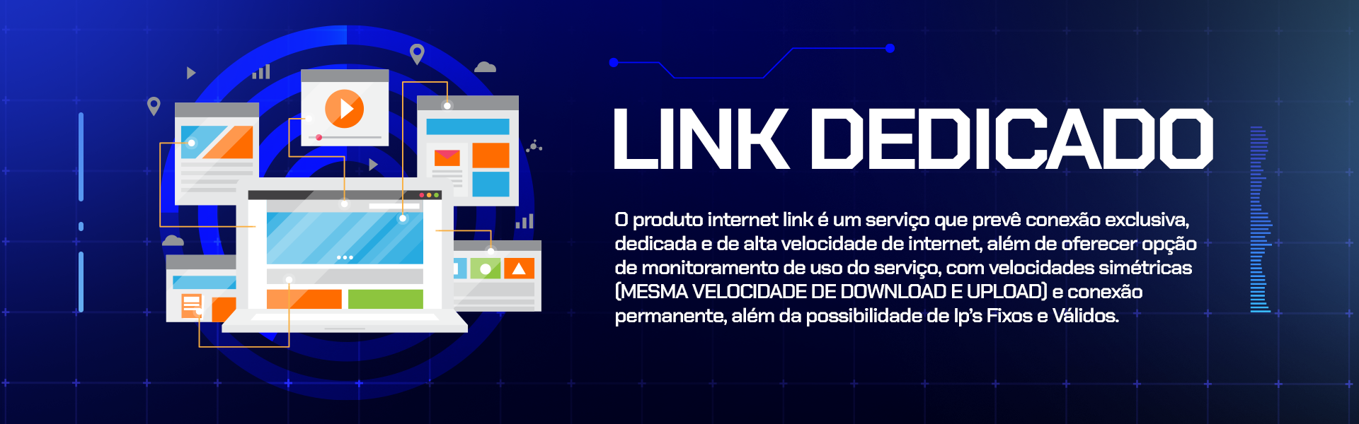 Iniciou suas atividades em 2012, desde então, vem oferecendo Conexões de alta qualidade, soluções e alto desempenho com 100% de disponibilidade. Conexão segura e confiável, fundamental para o Mercado Corporativo, Empresarial e Governamental.